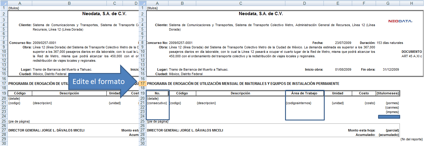 Cómo agregar columnas a los reportes en Neodata Precios Unitarios